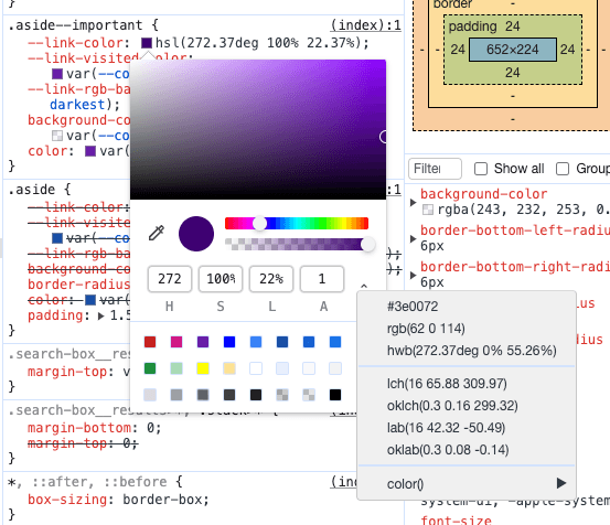 可以通过以上方式,快速切换颜色格式。拾色器也能够去识别屏幕上任何颜色(Chrome之外也可以)