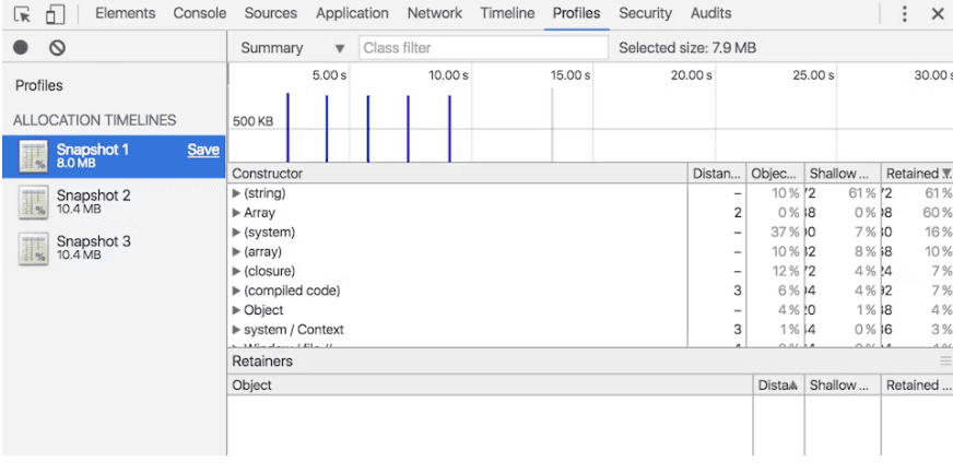 Identify JS heap memory leaks with Allocation Timelines
