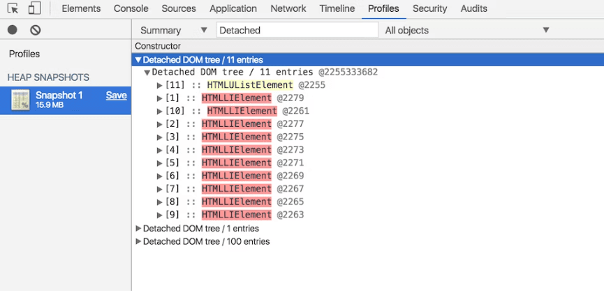 Discover detached DOM tree memory